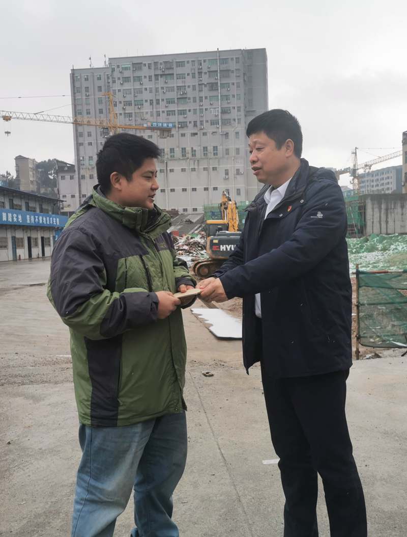 公司黨委副書記、總經(jīng)理江中同志慰問錦園路項目一線困難群眾,并向堅守在項目建設一線的工人們提前送上新春慰問,致以衷心的感謝和美好的祝愿,感謝大家為項目建設付出的巨大努力。江中強調(diào),項目負責人要做好各項服務保障工作,確保大家過一個歡樂祥和的春節(jié)。