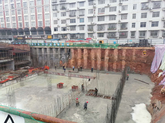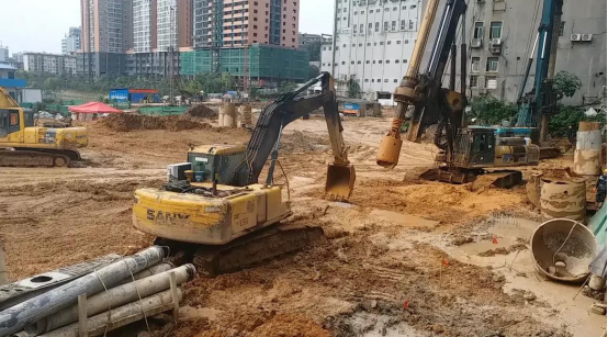 太平溪地下停車場加班進行土方挖運施工