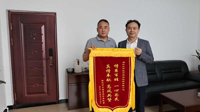 勝利村二組為市城建投公司送錦旗