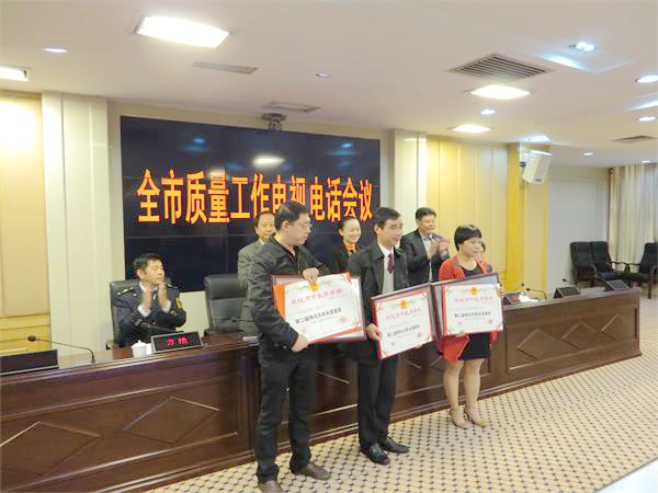 李暉市長代表市委市政府向獲獎單位表示祝獲并頒發(fā)證書牌匾,鼓勵企業(yè)在各自的行業(yè)和領(lǐng)域,嚴格質(zhì)量控制和管理,帶動全市質(zhì)量工作水平上臺階。