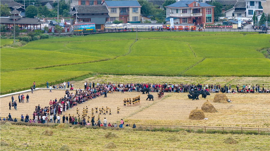 9月23日,中國農(nóng)民豐收節(jié),會(huì)同縣的稻香詩田景區(qū)內(nèi)一派歡騰景象,成為慶祝豐收的熱鬧主場。田埂間稻浪翻滾,空氣中彌漫著清甜的稻香,一場場充滿鄉(xiāng)土氣息與歡樂氛圍的活動(dòng)在此輪番上演——激昂的斗牛舞踏著鼓點(diǎn)躍動(dòng),金黃的草龍舞在人群中蜿蜒穿梭,拔河比賽的吶喊聲此起彼伏,還有趣味十足的抓鴨子游戲,讓參與者在追逐與歡笑中共享豐收的喜悅,將秋日的田園變成了一片歡樂的海洋。