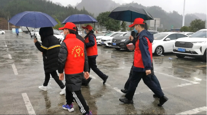 無獨(dú)有偶,在通道服務(wù)區(qū),一把把“暖心傘”撐起了這風(fēng)雪旅途上的“晴天”。這次雨雪來得突然,很多司乘車上都沒有帶雨具,在停車區(qū)下車后只能淋雨前往綜合區(qū)。“路燈”志愿者了解情況后,主動(dòng)為每一位司乘撐起暖心傘,在停車區(qū)和綜合區(qū)之間“迎來送往”。 同時(shí),“路燈”志愿者還為司乘提供指引路線、指揮車輛、發(fā)放健康包、送姜茶等服務(wù),暖心的服務(wù)得到司乘的一致好評(píng)。