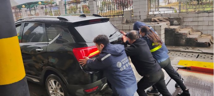 中午時(shí)分,在興隆收費(fèi)站,一輛黑色小車正常繳費(fèi)后突發(fā)故障,多次打火后仍無法啟動(dòng)。收費(fèi)站工作人員幫助司機(jī)將車推至安全區(qū)域,并幫司機(jī)聯(lián)系了附近的汽修廠。對(duì)收費(fèi)站工作人員的熱心幫助,司機(jī)連連表示感謝。
