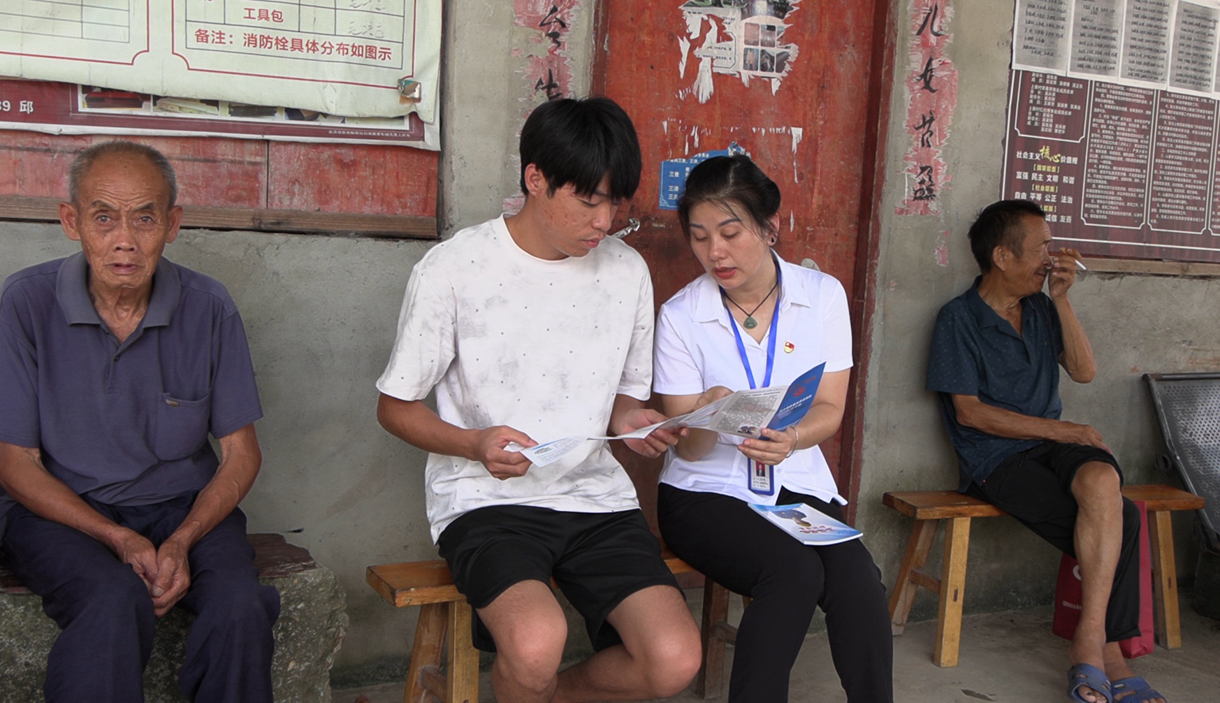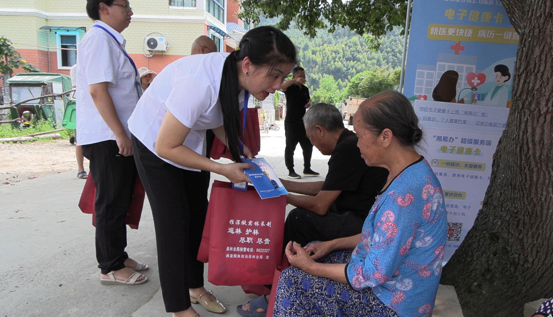 在播陽(yáng)鎮(zhèn)上寨村,通道縣政務(wù)服務(wù)中心和縣人社局窗口業(yè)務(wù)部門,通過發(fā)放宣傳手冊(cè)、擺放展板的方式,耐心為群眾解讀政務(wù)服務(wù)相關(guān)政策,對(duì)群眾咨詢的各類問題進(jìn)行現(xiàn)場(chǎng)解答。此次政務(wù)下鄉(xiāng)主要解決鄉(xiāng)鎮(zhèn)老人“路途遠(yuǎn)”“行動(dòng)不變”等難題,多聚焦社保待遇領(lǐng)取資格認(rèn)證、工傷保險(xiǎn)、城鄉(xiāng)居民基本養(yǎng)老保險(xiǎn)、靈活就業(yè)養(yǎng)老保險(xiǎn)待遇領(lǐng)取政策等老年人關(guān)心的問題,為他們集中辦理相關(guān)業(yè)務(wù),切實(shí)打通服務(wù)群眾的“最后一米”。